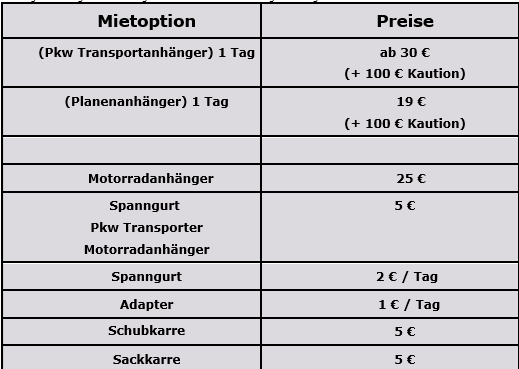 Das Leihen der Anhänger ist auch an Sonn-und Feiertagen möglich!